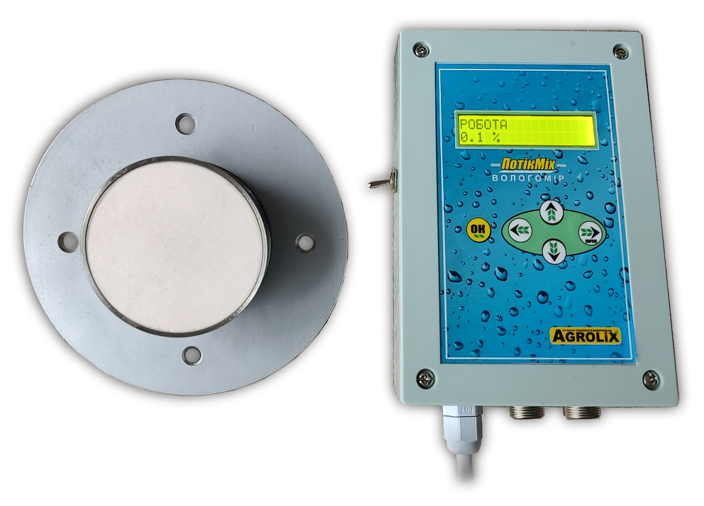 Електронний вимірювач вологості бетону «Потік-Б-Мікс» призначен для вимірювання відносної вологості бетонної суміші, цементу, піску за допомогою чуттєвого радіочастотного датчика в змішувачах та бункерах.